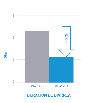 Los resultados fueron, -46% de probabilidad de presentar diarrea en el grupo que recibió BB-12 y -50% la duración en los días con diarrea, reduciendo casi a un día y medio la presencia de diarrea en los bebés.